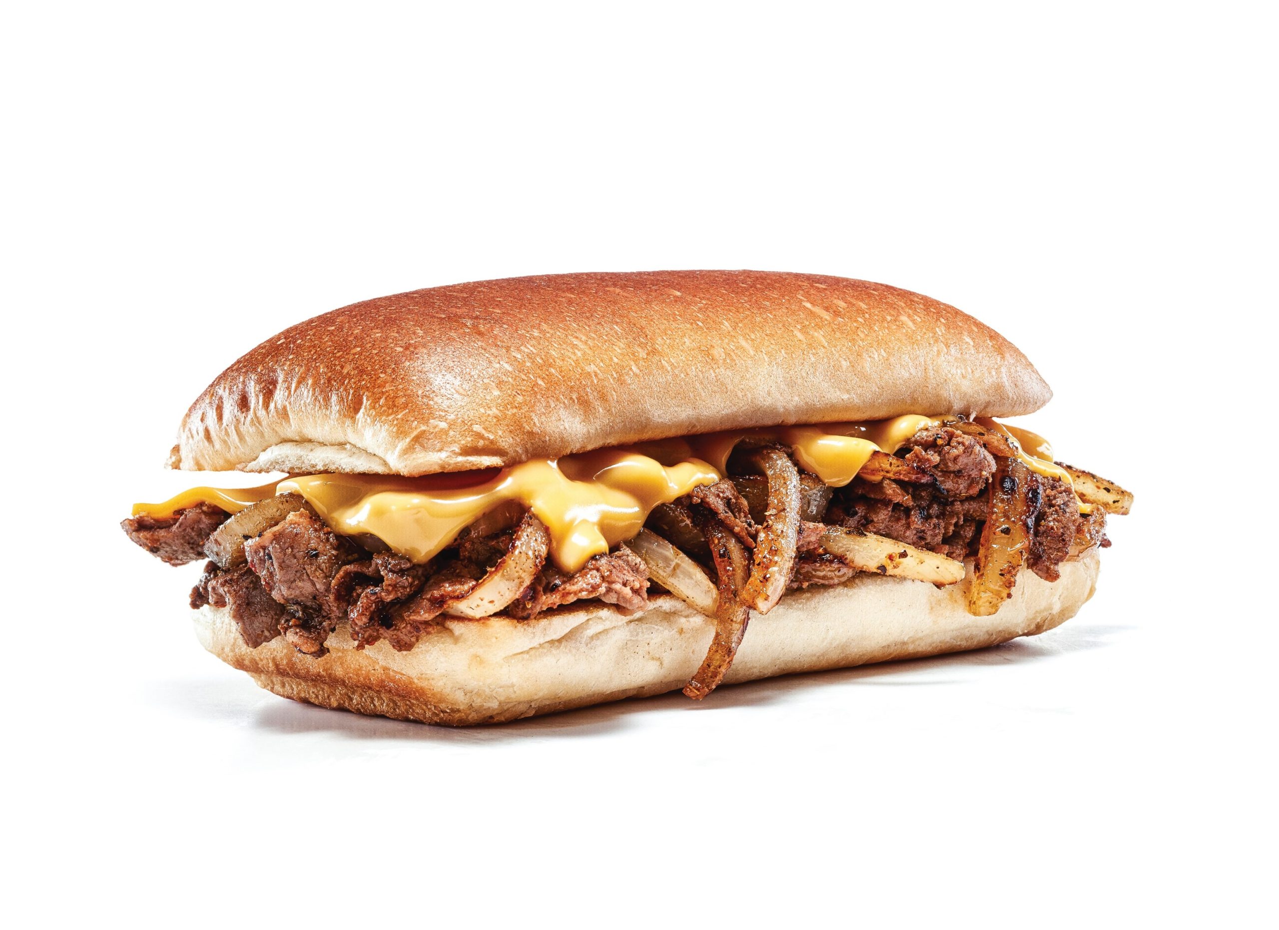 Grilled sirloin steak & onions topped with melted American cheese on a grilled roll.